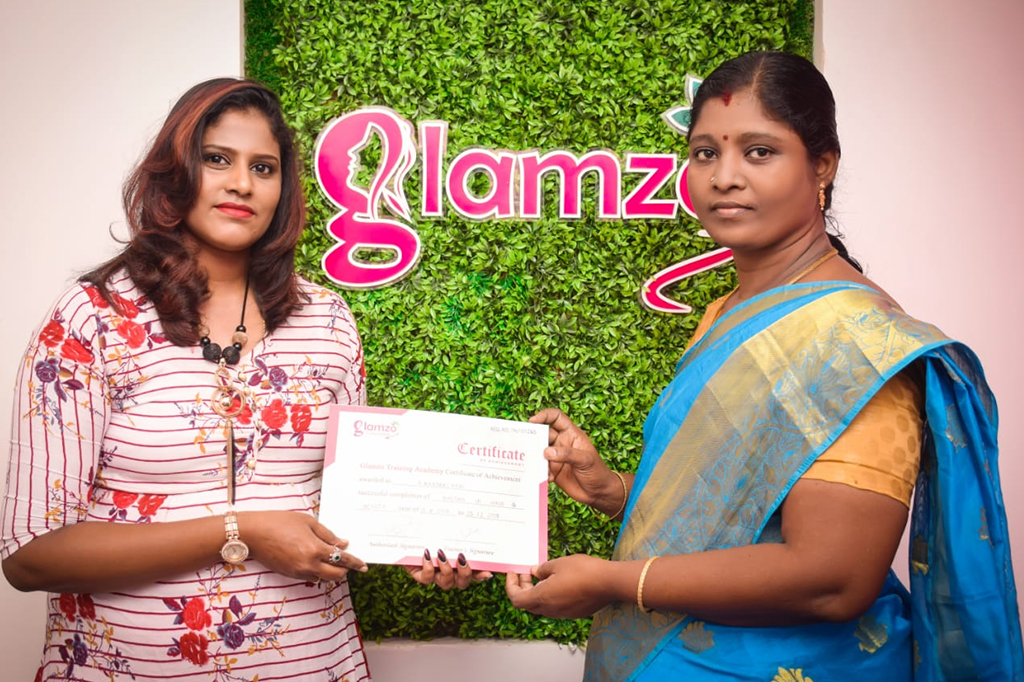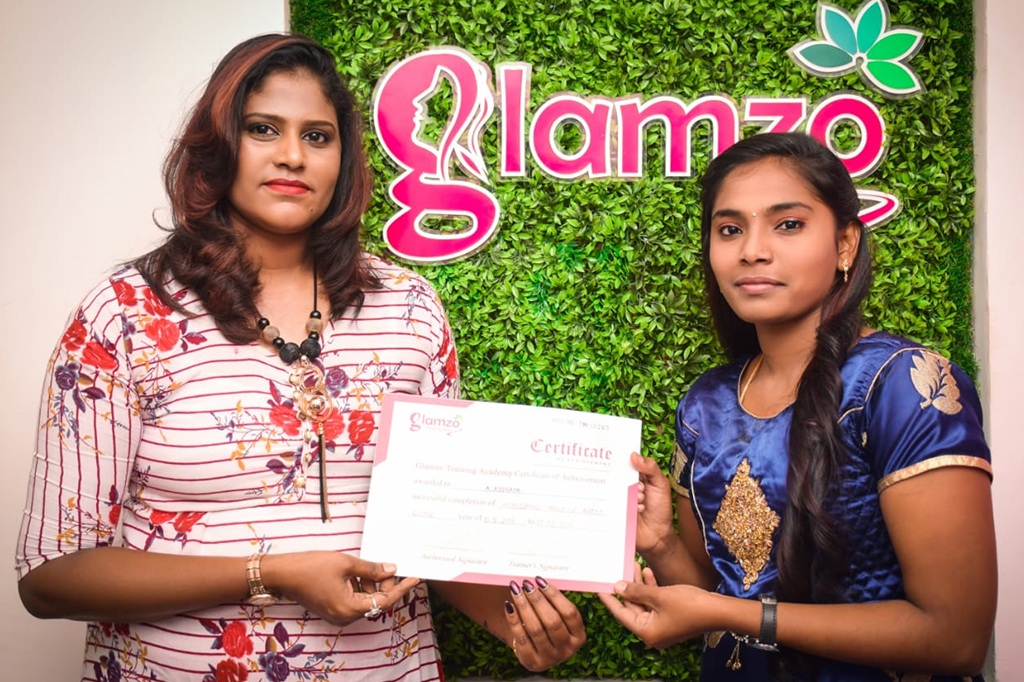 A thing of Beauty is a Joy Forever. Every person in this world is attracted to beauty and want to look beautiful. The Art of Beauty & Cosmetology has helped many ordinary women to become beautiful and thereby boosting their confidence and career. In recent years there has been an increase in the number of beauty parlour all over the country. This created a demand for beauticians who have completed any Beauty parlour courses, Cosmetology courses, Beauty Therapist courses , or Hair and Beauty courses from a reputed Institute for Beautician courses. There are many parlours offering Beautician courses in Madurai. Glamzo Training Academy is the best Training Centre for Beautician Courses with well trained faculty and up to date study materials.By completing course one can either take up a job with a reputed beauty salon and spa or Start their own Beautician institute and provide employment to others. Being a Career in Beautician is a respectable profession with a very high earnings.